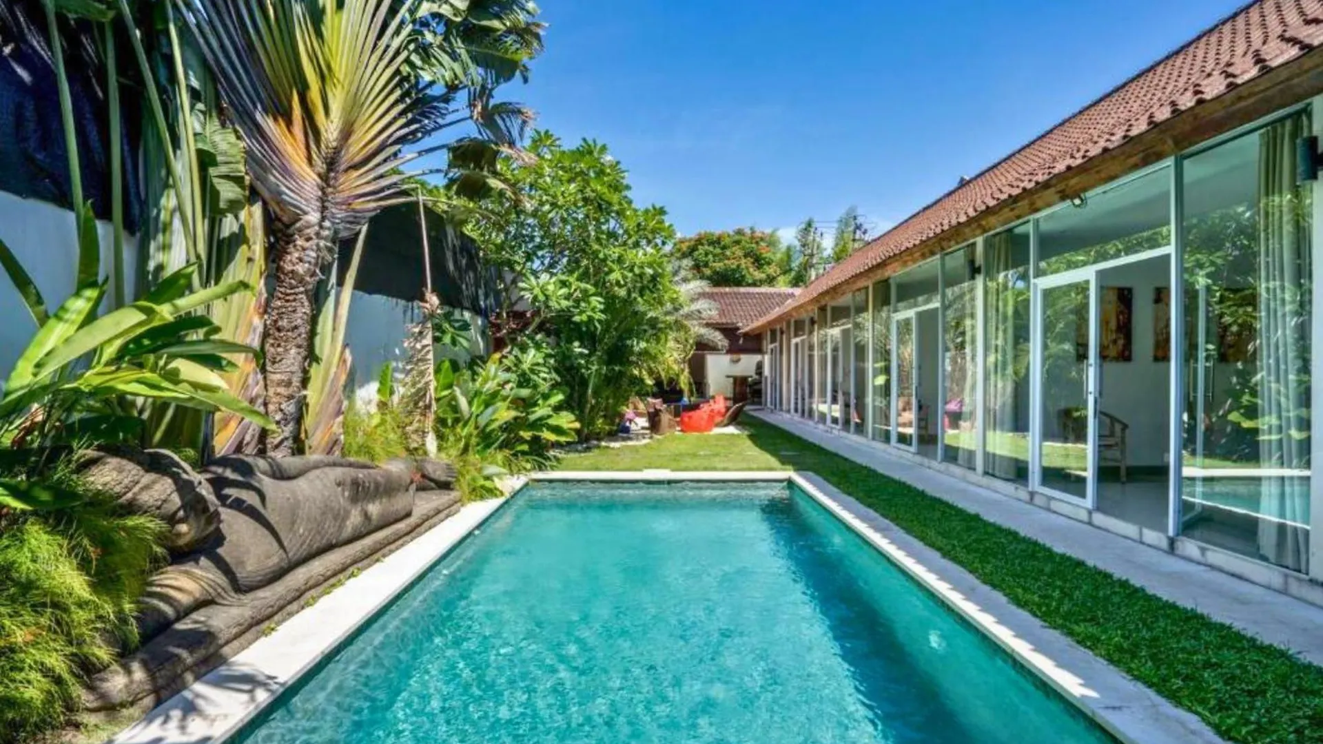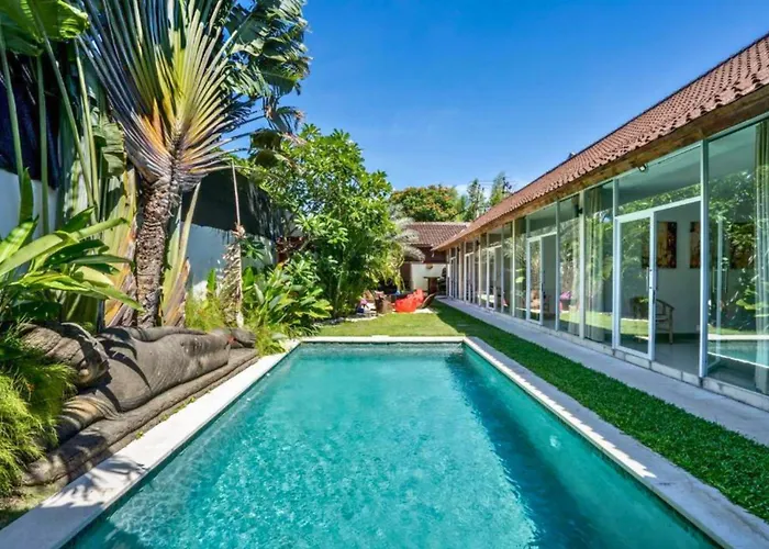 Diese Villa in Seminyak befindet sich im Stadtteil Sunset Road von Seminyak, in ca. 500 Meter Entfernung von der Magali Pascal und in rund 3 km Entfernung vom Strand Batu Belig. Die Villa liegt in etwa 20 Gehminuten Entfernung vom Krisna Oleh - Oleh Bali Sunset Road sowie in unmittelbarer Nähe von der Bushaltestelle Halte Seminyak. Shopping-Liebhaber werden die Lage, in rund 2 km Entfernung vom Einkaufszentrum The Seminyak Square, zu schätzen wissen.